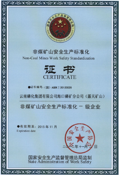 With greater emphasize on management optimization, YPH has gotten the certification of National IS9001-2000 Quality Management System, IS14001-2004 Environmental Management System, GB/T28001-1999 Occupational Health and Safety Management System(OHSMS), Non-Coal Mines Work Safety Standardization Certificate, and also "Cleaner production" Qualified company successively. In particular, YPH was approved as a member of the National Green Mining Convention, which made YPH become one of the first batch of the National Green Mines.