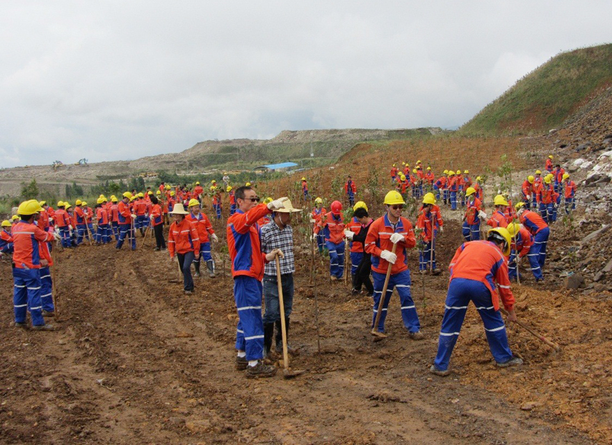 The Open-pit mining is closely related to the local area around the mine. Company to the new concept of a harmonious mine, new ideas, fulfill social responsibility, correctly handle the relationship between mining development and local economic development, carry out "Yunnan photostatting Group-Han Ying" enterprise harmonious development model, actively repay society, make full use of the surrounding rural labor, participate in goaf area reclamation vegetation work, harmony and common development.