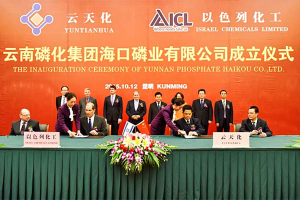 中以合資企業(yè)云南磷化集團(tuán)海口磷業(yè)有限公司(簡稱YPH)于2015年10月成立,注冊(cè)資本23億元人民幣,由中以化工以色列化工集團(tuán)、云天化集團(tuán)合資組建。